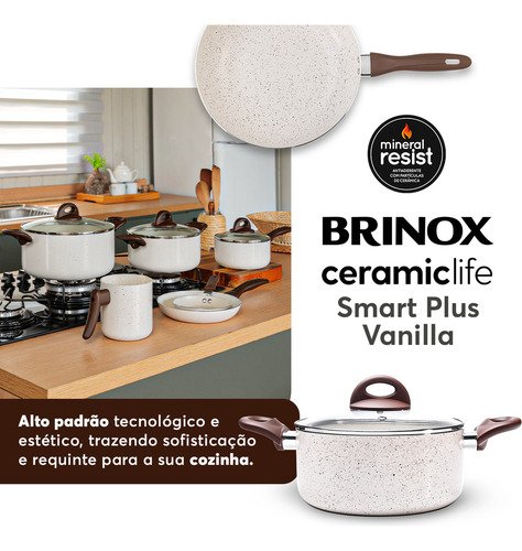 Com revestimento antiaderente. | Tecnologia Mineral Resist | Não vai à lava-louças | Não pode ir ao forno | Não utilizar em fogões de indução