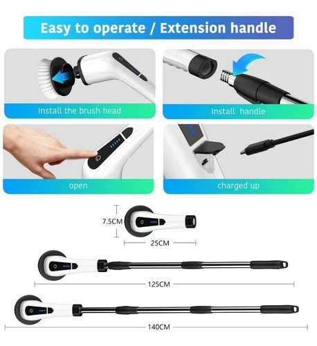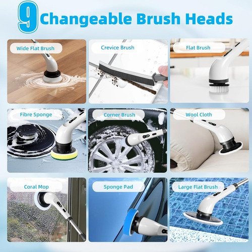 Unidades por kit: 1. | Escova de limpeza elétrica com 9 funções para facilitar a limpeza em diversas superfícies. | Cabeça de plástico com cerdas de microfibra para melhor eficiência.